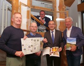 Bildtext: Der Tourismusregion Coburg.Rennsteig e.V. schaute zurück auf die Tourismusjahre 2024 und 2025 und gab einen Ausblick auf das kommende Jahr (v.l.n.r. Lutz Lange, Vorsitzender Regionaler Tourismusausschuss, Sonnebergs Stellvertretender Landrat Andreas Groß, Coburger Landrat Sebastian Straubel, Coburgs 2. Bürgermeister Hans-Herbert Hartan und Geschäftsführer Dr. Jörg Steinhardt), © Berthold Köhler