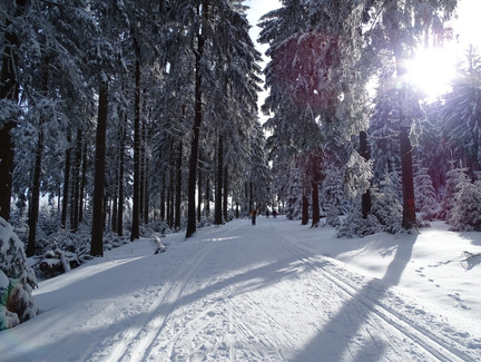 Wundervolle Loipen - das bietet Masserberg. Der zentrale Anlaufpunkt ist der große Parkplatz mit Rennsteighaus am Ortseingang Masserberg. Von hier haben Sie die Gelegenheit in Richtung Osten und Westen in das zirka 80 Kilometer lange Langlaufnetz um Masserberg einzusteigen.