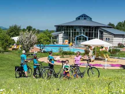 Die Tour beginnt an der ThermeNatur Bad Rodach. Nach einer kurzen Strecke durch den Ostteil der Kurstadt öffnet sich das üppige Grün des Bauernlands, das sich anfangs noch recht eben zeigt. Die Steigungen, die im Verlauf der Tour zu überwinden sind, werden sich in Grenzen halten. Dennoch wird sich ein großartiger Fernblick weit ins Coburger Land hinein öffnen. Vorbei an Wiesen und Feldern geht es zunächst Richtung Elsa und weiter nach Oettingshausen. Wenig später wird ein Waldstück erreicht – an heißen Sommertagen der perfekte Ort für eine längere Pause oder ein Picknick. Auf gut ausgebauten Wegen führt die Tour anschließend durch eine ausgedehnte Landschaft aus Wiesen und Feldern zurück nach Bad Rodach. Auch dieser Abschnitt bietet einen lehrreichen Einblick in die Landwirtschaft der Region. Eindrucksvoll ist das gelungene Mit- und Nebeneinander von intensiv genutzten Anbauflächen, wild wuchernden Hecken, sich selbst überlassenen Obstbäumen und Rückzugsräumen für Pflanzen und Tiere. Die hohe Qualität der Erzeugnisse kann man sich nach der Ankunft in einem der vielen Gasthäuser von Bad Rodach schmecken lassen.